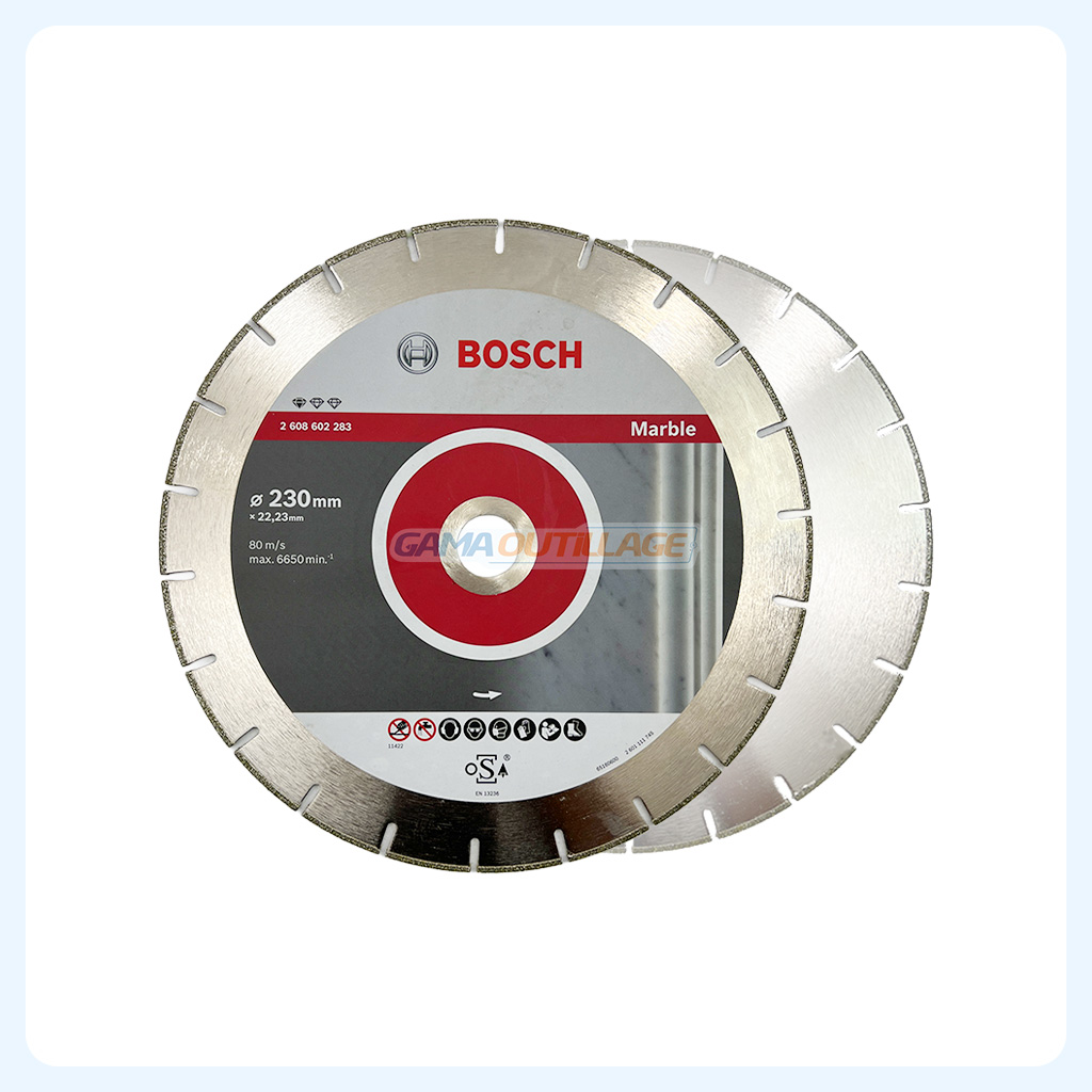 >Disque diamant BOSCH Ø230 mm marbre. Coupe fine et lisse sur pierre, granit, céramique. Couronne diamantée continue. Chez GAMA OUTILLAGE.