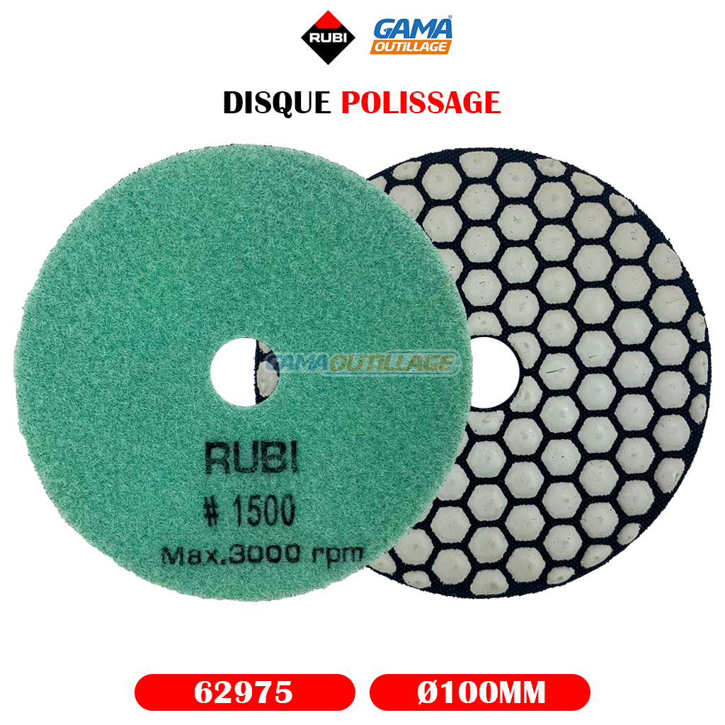 - Les disques de polissage RUBI sont conçus spécialement pour les travaux à sec sur des surfaces en pierre naturelle en particulier le granit et le marbre ainsi que le béton mature.