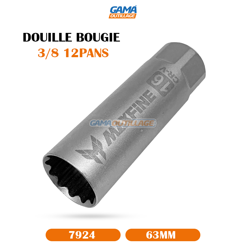DOUILLE BOUGIE 3/8 12PANS 63MM MAXFINE, est un outil utilisé pour desserrer et serrer les bougies d’allumage des moteurs à combustion interne.