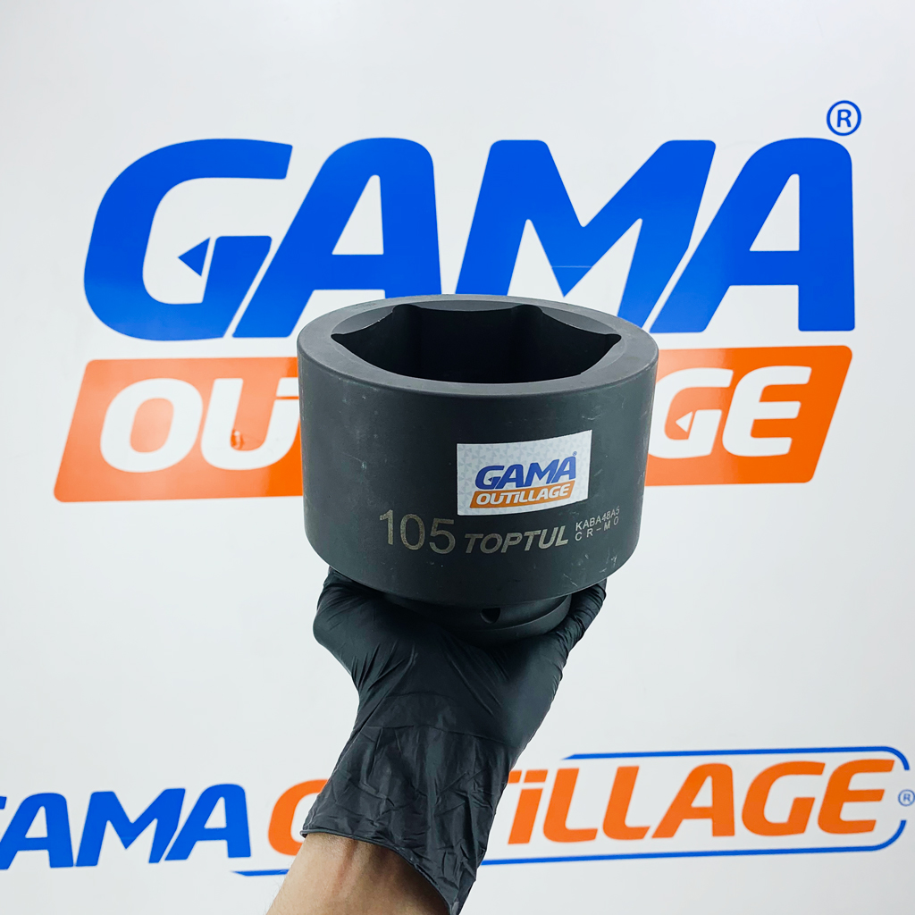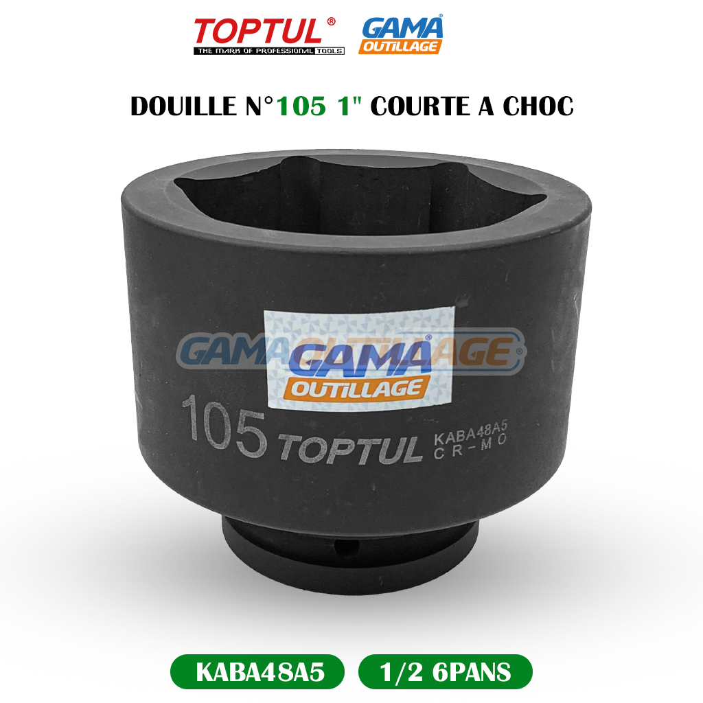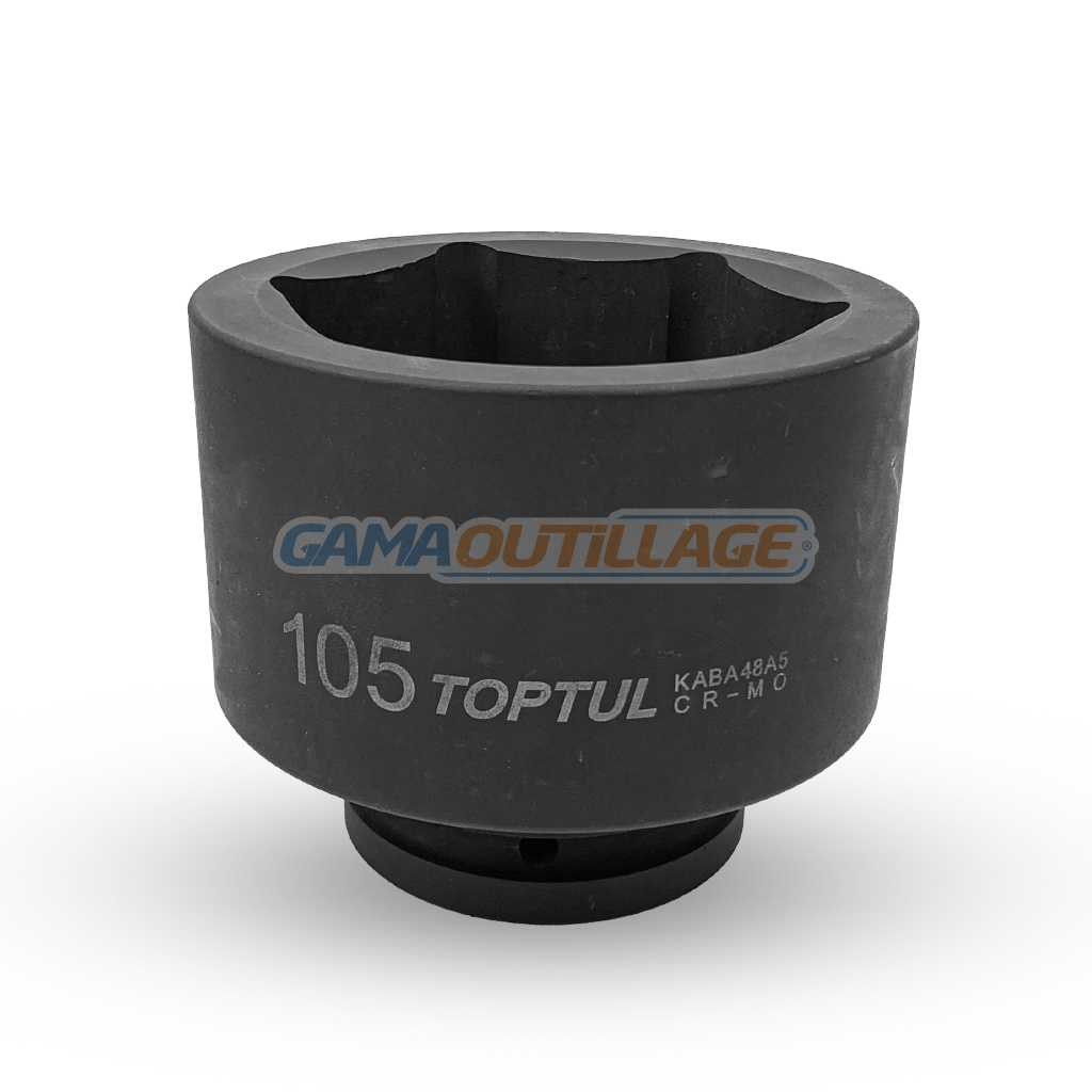DOUILLE N°105 1″1/2 6PANS COURTE A CHOC TOPTUL, est un outil de qualité professionnelle utilisé pour desserrer et serrer les écrous et les boulons hexagonaux.