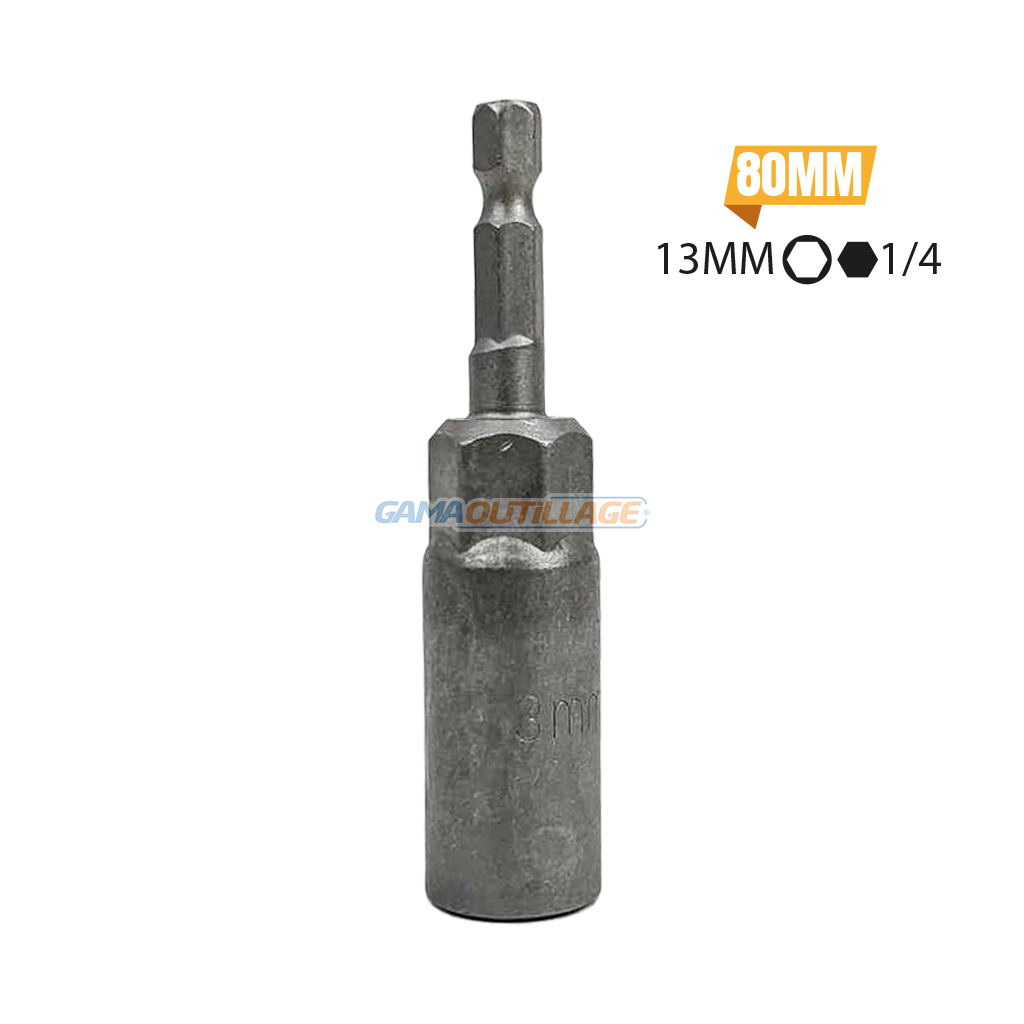 GAMAOUTILLAGE vous propose une EMBOUT TETE DOUILLE PROFOND 13MM TA, est un outil de vissage conçu pour atteindre les vis et les écrous situés dans des endroits difficiles d’accès, comme les profondeurs de mécanismes ou les zones étroites. La profondeur accrue de cet embout par rapport à un embout standard facilite grandement le travail, en particulier lorsque l’espace de manœuvre est limité.