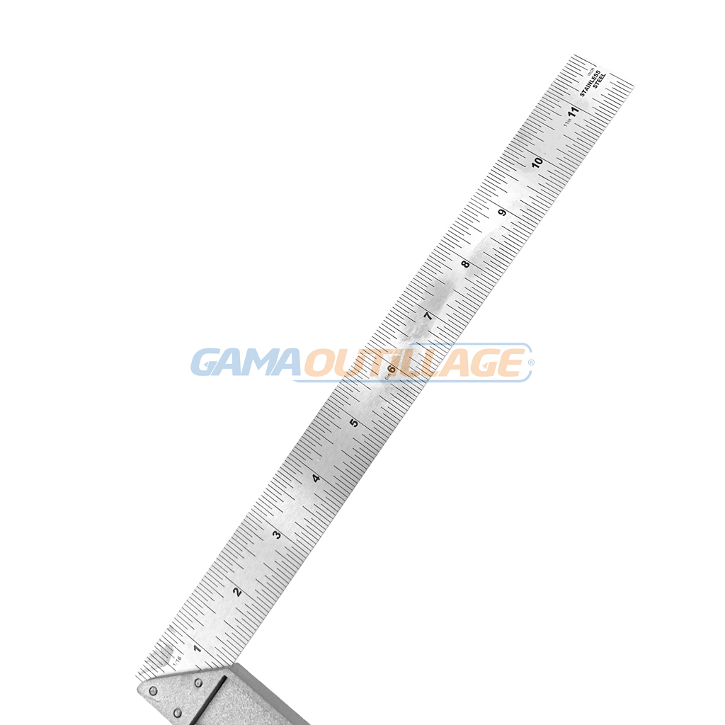 GAMAOUTILLAGE vous propose une EQUERRE 300MM JADEVER, est un angle carré en alliage d’aluminium (métrique et pouce) est un outil de mesure utilisé pour déterminer les angles droits. Il est constitué d’une règle en alliage d’aluminium avec une base et une équerre. La base est graduée en unités métriques et en pouces, ce qui permet de mesurer les angles dans les deux systèmes.