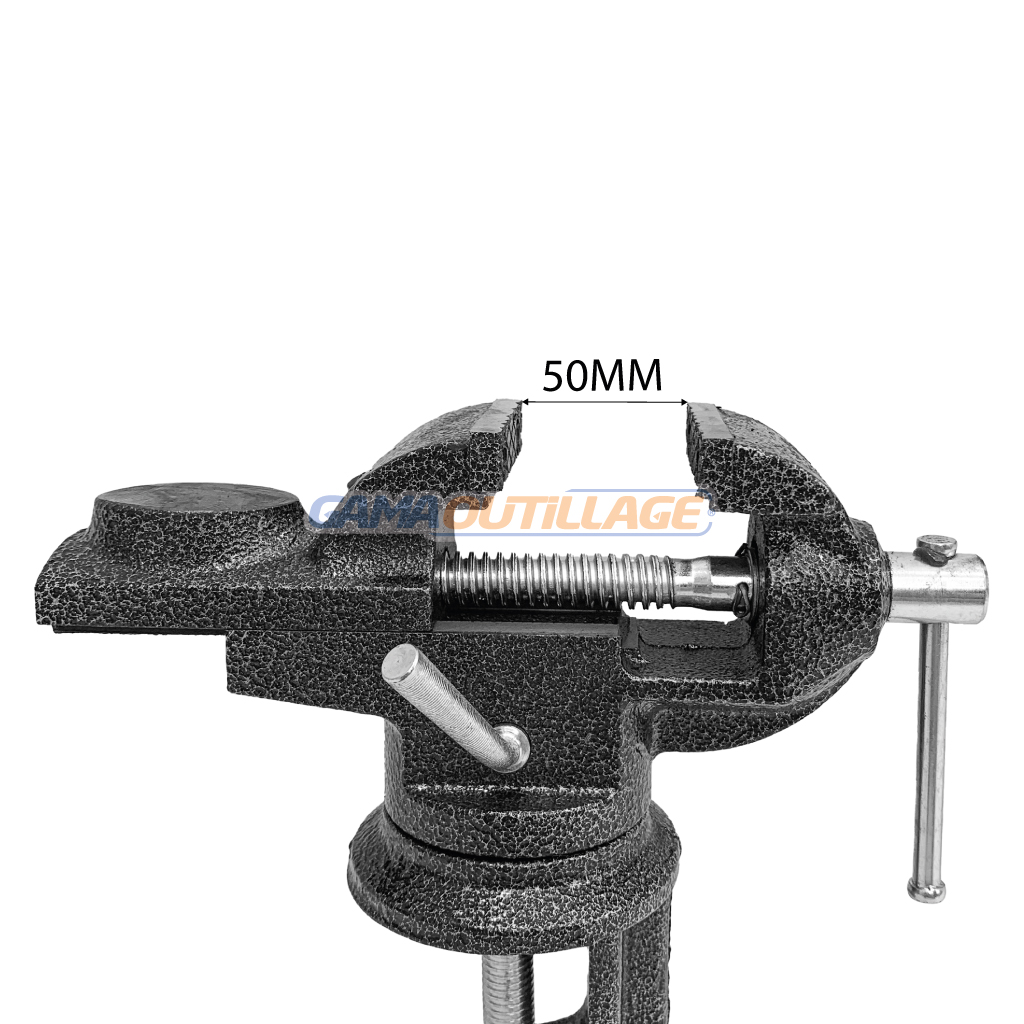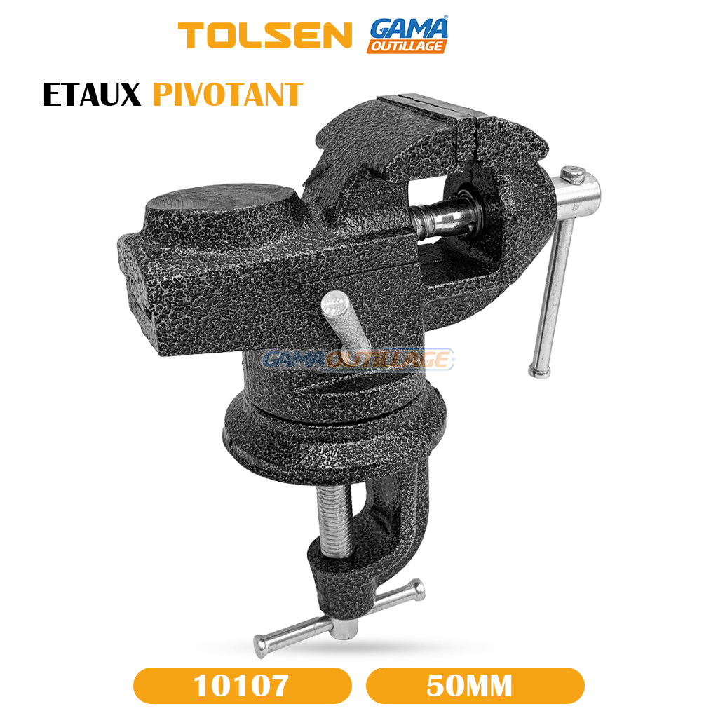 GAMAOUTILLAGE vous propose une est ETAUX PIVOTANT 50MM TOLSEN, un outil indispensable pour tout bricoleur ou amateur de travaux manuels. Il offre une mâchoire en acier trempé et robuste capable de serrer fermement des pièces de différentes formes et tailles. Sa base pivotante à 360° permet une grande flexibilité et un positionnement précis de la pièce à travailler.