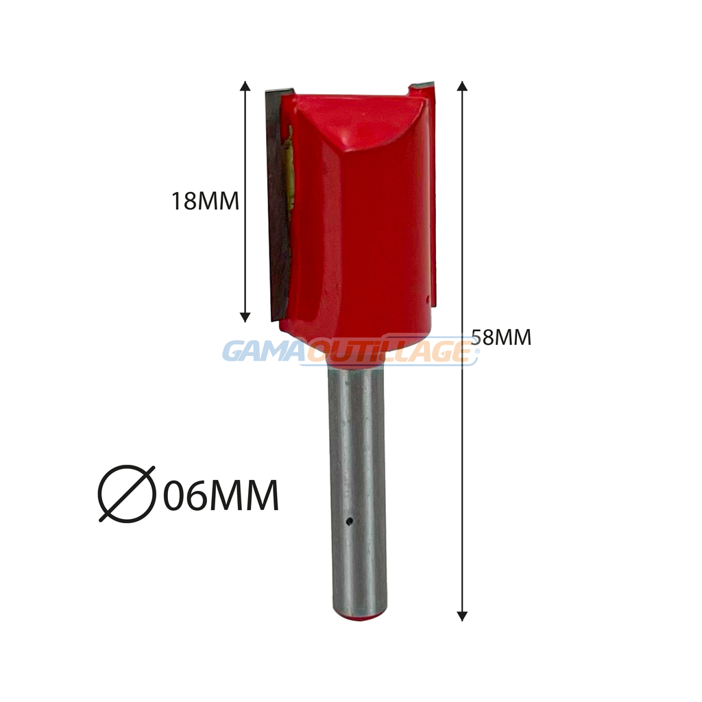 GAMAOUTILLAGE vous propose une FRAISE A RAINURER 6*18MM SL, est un outil de menuiserie utilisé pour créer des rainures dans le bois. Elle est composée d’une tige métallique de 06 mm de diamètre et de deux tranchants en carbure de tungstène.