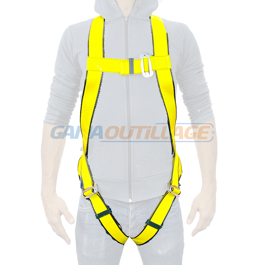 GAMAOUTILLAGE vous propose une HARNAIS DE SECURITE 7860 TA, Un harnais de sécurité est un équipement de protection individuelle (EPI) qui sert à protéger les travailleurs contre les chutes de hauteur. Il est composé d’une ceinture, de deux bretelles et de deux cuissards. Le harnais est fixé à un point d’ancrage solide, comme un garde-corps ou un rail de sécurité. En cas de chute, le harnais empêche le travailleur de se blesser en le retenant en position horizontale.