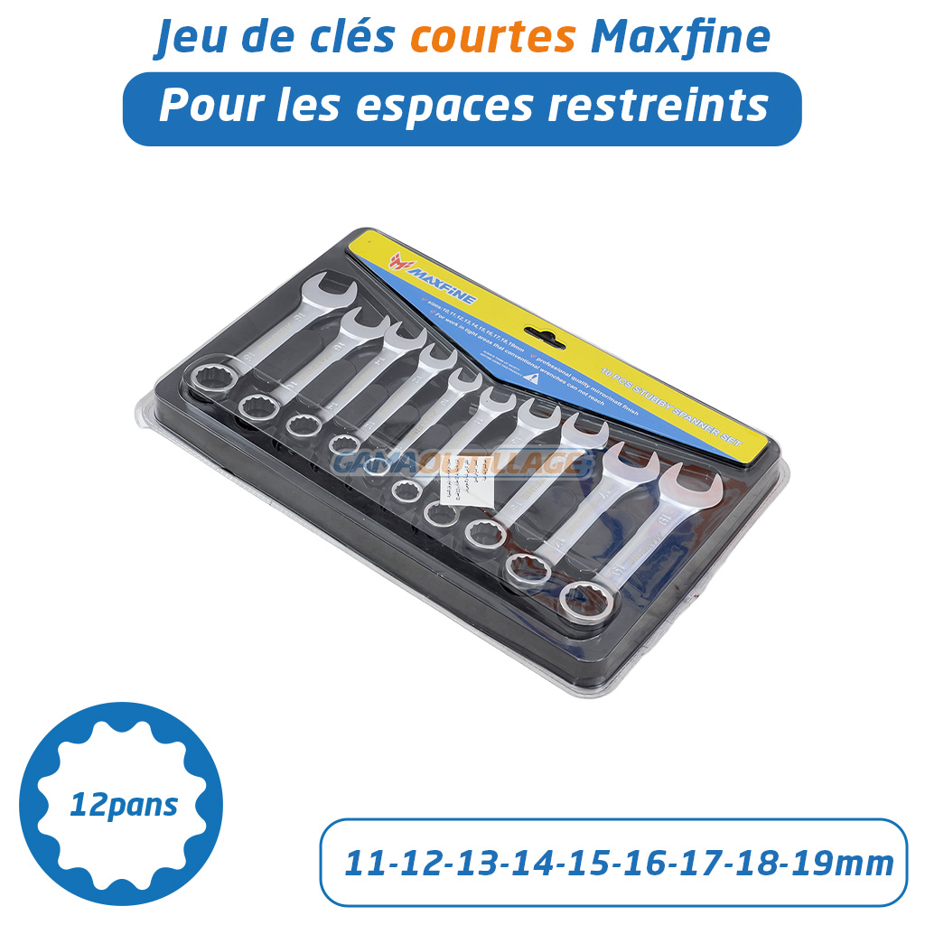 Jeu de clés mixtes courtes 10 pcs – 10 à 19 mm – Maxfine