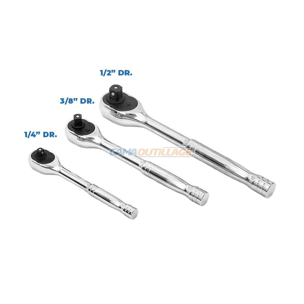 Jeu de Cliquets DYNAMO 3 Pièces – 1/4″, 3/8″, 1/2″ – Réversibles et à Libération Rapide