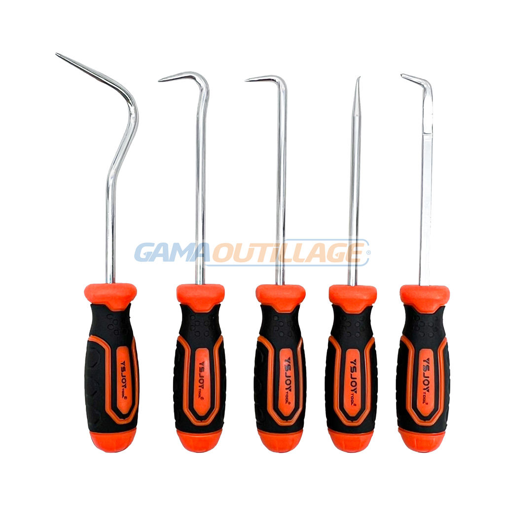 GAMAOUTILLAGE vous propose une JEUX DE POINTE DEMONTE JOINT 10PCS HT, Ce sont des outils utilisés pour retirer les joints d’étanchéité, les joints toriques et autres joints dans diverses applications mécaniques. Ils sont particulièrement utiles dans les domaines de la plomberie, de l’automobile et de la maintenance industrielle.