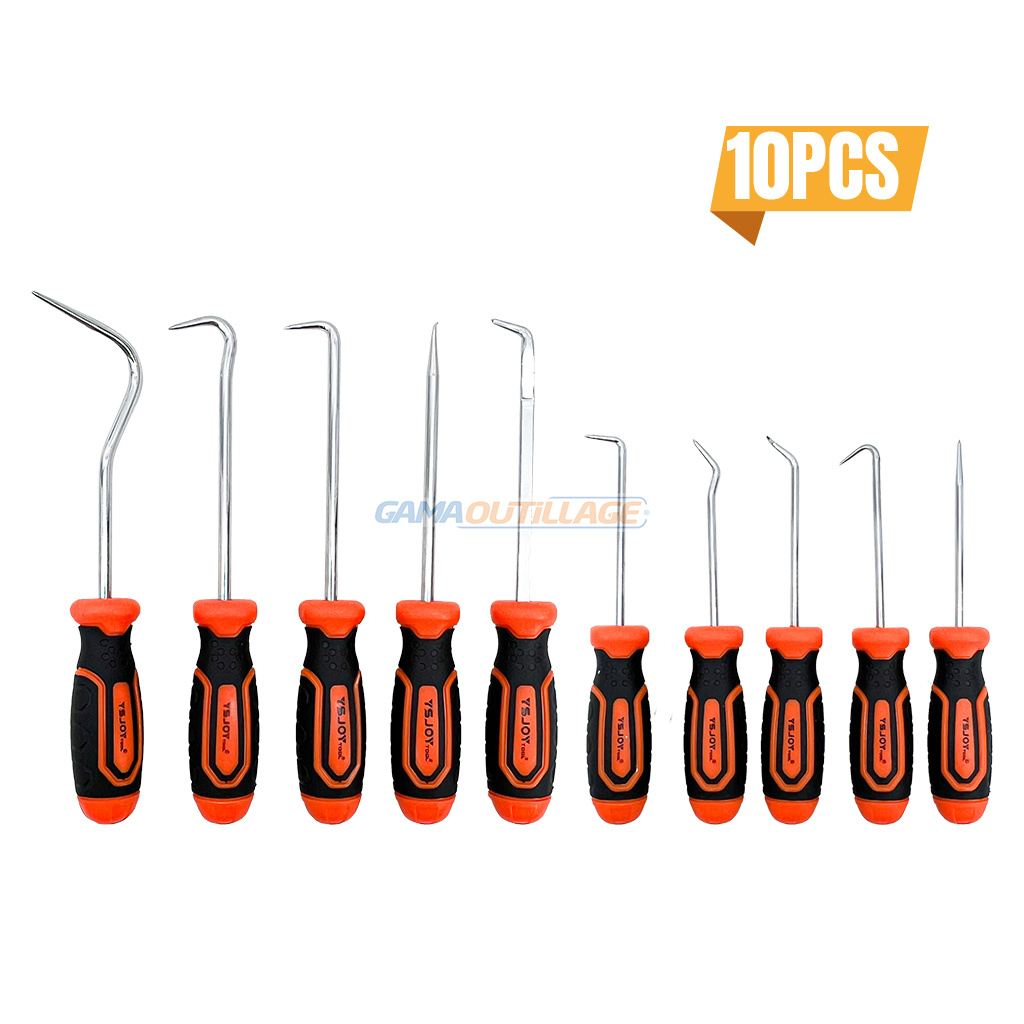 JEUX DE POINTE DEMONTE JOINT 10PCS HT, Ce sont des outils utilisés pour retirer les joints d’étanchéité, les joints toriques et autres joints dans diverses applications mécaniques. Ils sont particulièrement utiles dans les domaines de la plomberie, de l’automobile et de la maintenance industrielle.