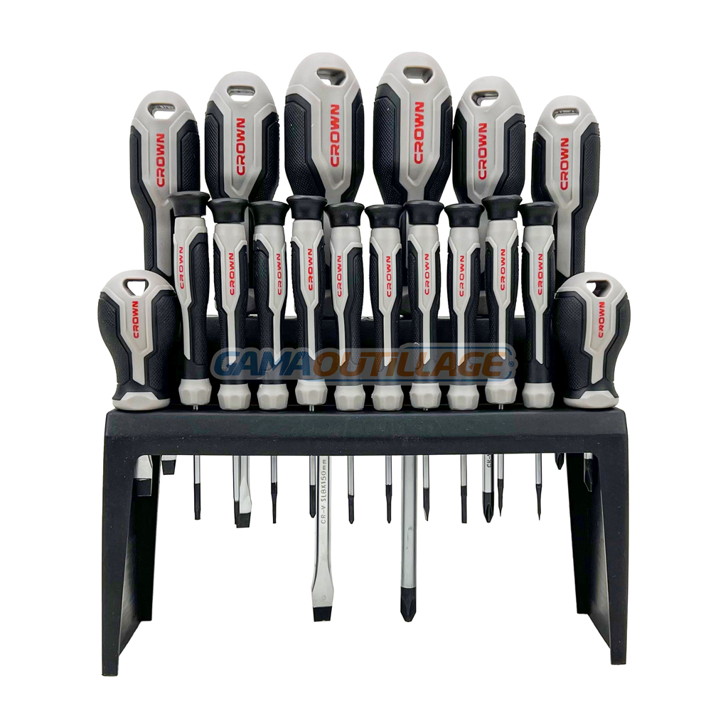 JEUX TOURNEVIS 18PCS CROWN, est un ensemble de tournevis complet et polyvalent qui vous permettra de réaliser tous vos travaux de bricolage. Il comprend une variété de tournevis à tête plate et cruciforme.
