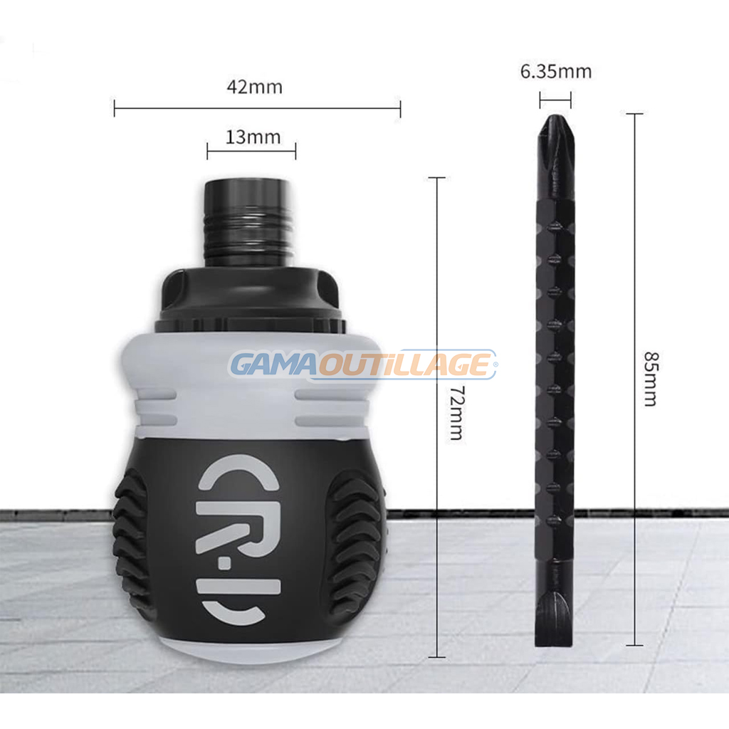 - évolutive Le trépan de ce tournevis peut être rétracté et ajusté pour contrôler la longueur de l’ensemble du tournevis de 9 à 13 cm, répondant aux besoins des différentes conditions de travail