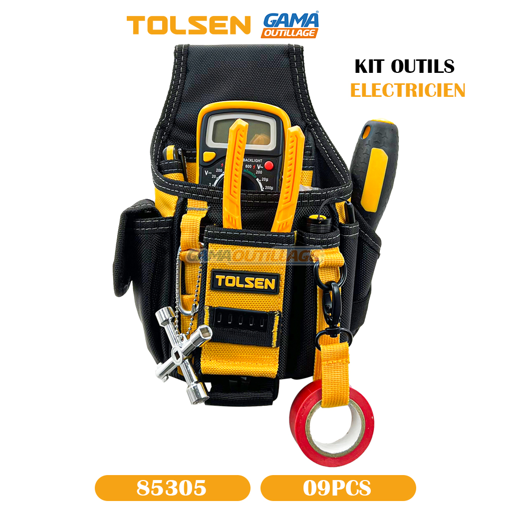 GAMAOUTILLAGE vous propose une KIT OUTILS ELECTRICIEN TOLSEN, Ce kit a été conçu pour les électriciens professionnels et les bricoleurs avertis effectuant des travaux d’installation, de maintenance et de réparation électriques. Il comprend une sélection d’outils de qualité Tolsen.