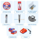 Conçu pour une utilisation professionnelle et semi-professionnelle, ce kit EMTOP permet de travailler efficacement sur le bois, le métal et le béton, aussi bien en atelier que sur chantier. L’ensemble est livré dans un coffret rigide EMTOP facilitant le transport et le rangement.