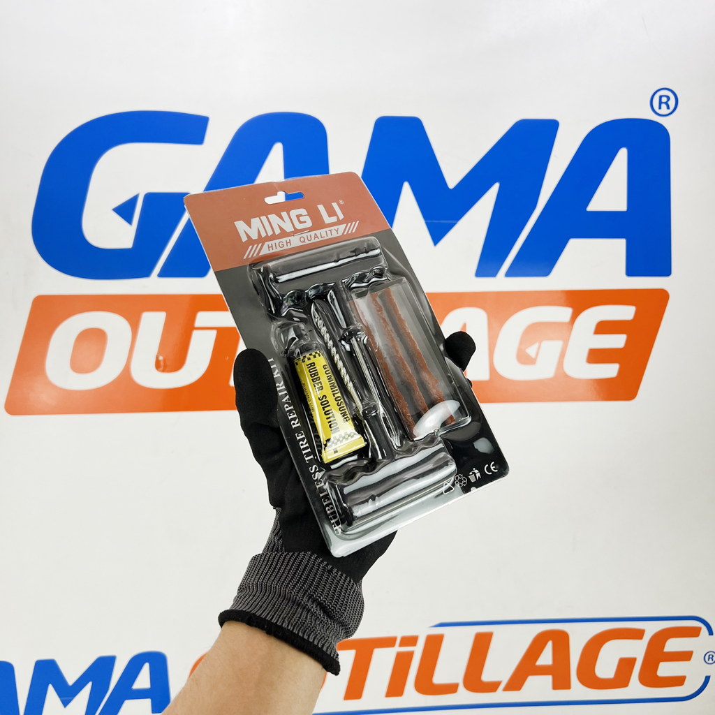 GAMAOUTILLAGE vous propose KIT REPARATION PNEU TUBLESSE MING LI, une est un ensemble d’outils et de matériaux conçus pour réparer rapidement et efficacement une crevaison sur un pneu tubeless. Il est particulièrement utile pour les véhicules motorisés comme les voitures, les motos, les VTT et les utilitaires.