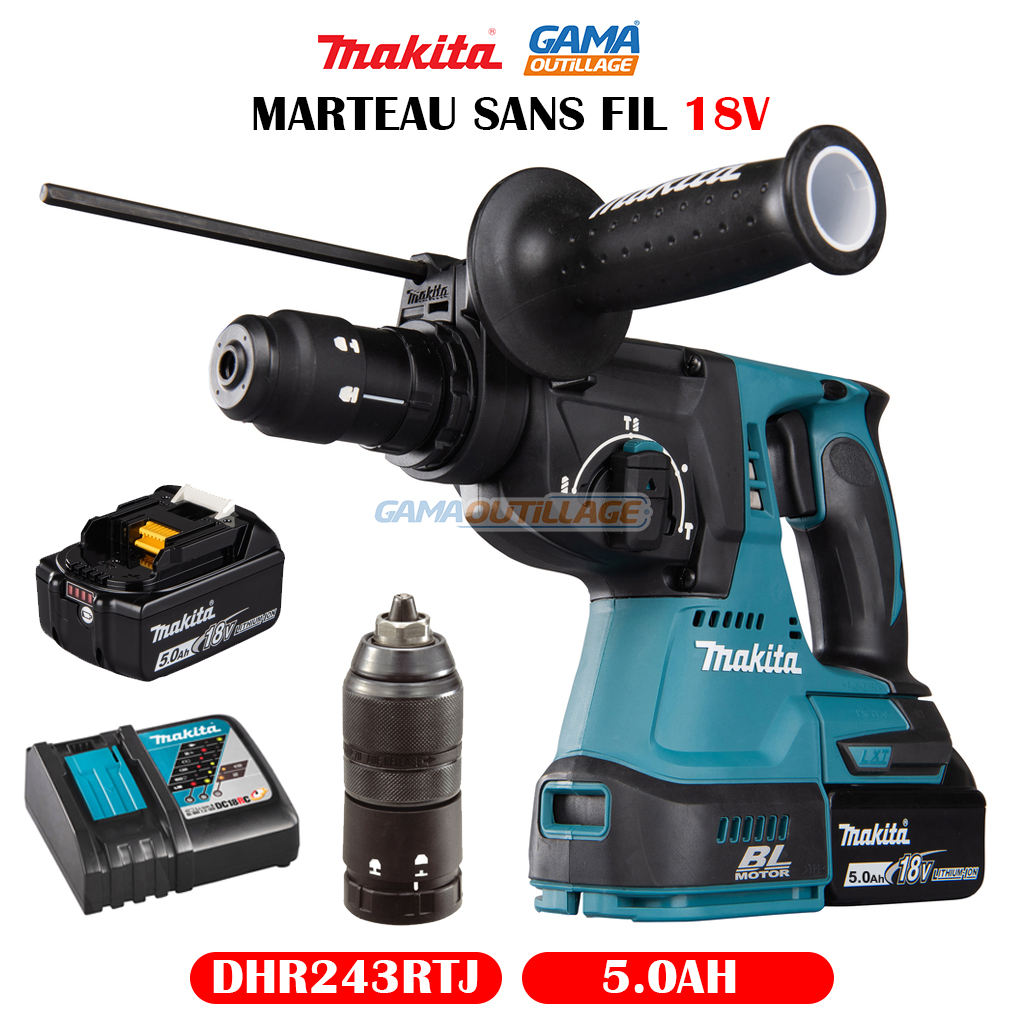 GAMAOUTILLAGE vous propose une MARTEAU S/FIL 18V 5.0AH MAKITA, un excellent outil avec le marteau perforateur sans fil Makita 18V 5.0Ah. Ce modèle est très apprécié par les professionnels et les bricoleurs amateurs pour sa polyvalence, sa puissance et sa facilité d’utilisation.