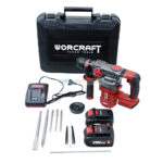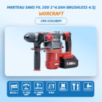 Puissant marteau perforateur sans fil 20V Brushless Worcraft, 4.5J, livré avec 2 batteries 4.0Ah. Idéal pour le perçage et burinage intensif.