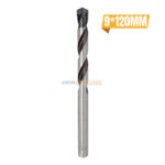 MECHE A BETON CYLINDRIQUE 9*120MM ALPEN, est un outil de perçage conçu spécifiquement pour travailler sur le béton. Les dimensions 7*100mm indiquent que le diamètre de la pointe du foret est de 9 millimètres et que sa longueur totale est de 120 millimètres.