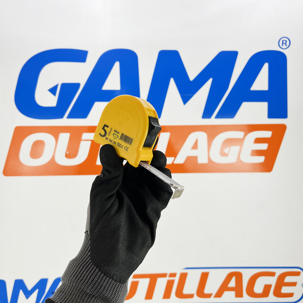 GAMAOUTILLAGE vous propose une METRE RUBAN 5M 19MM DEKOR, est un outil de mesure incontournable pour les professionnels et les particuliers. Réputé pour sa robustesse et sa précision, il est idéal pour une multitude de travaux, de la menuiserie à la construction.