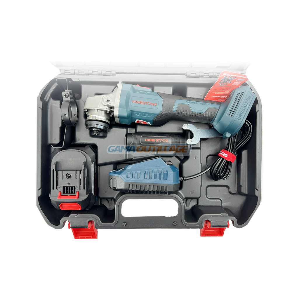 1. Meuleuse Sans Fil HONESTPRO 115 mm – 21V 1×4.0Ah – Moteur Brushless + Coffret Complet