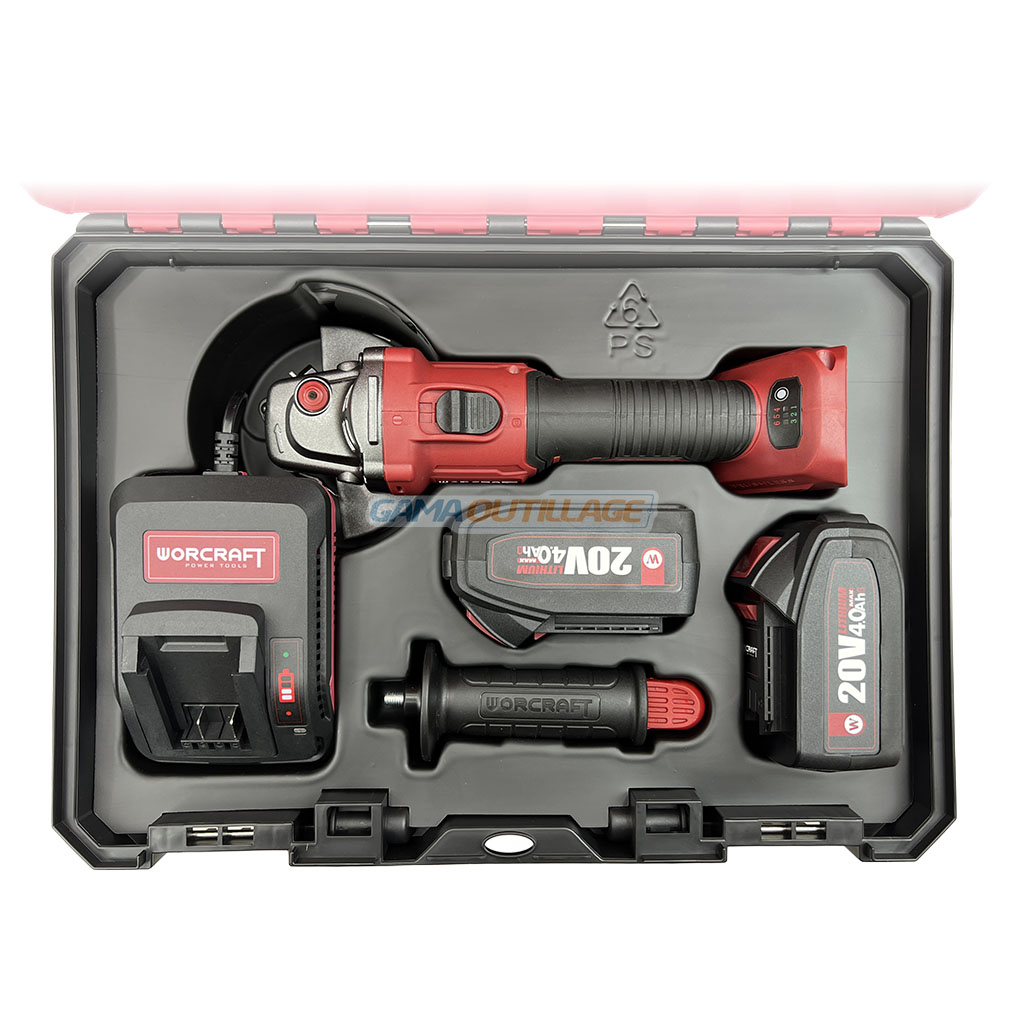 Meuleuse d’angle sans fil WORCRAFT 20V – 2 batteries 4.0Ah – Brushless
