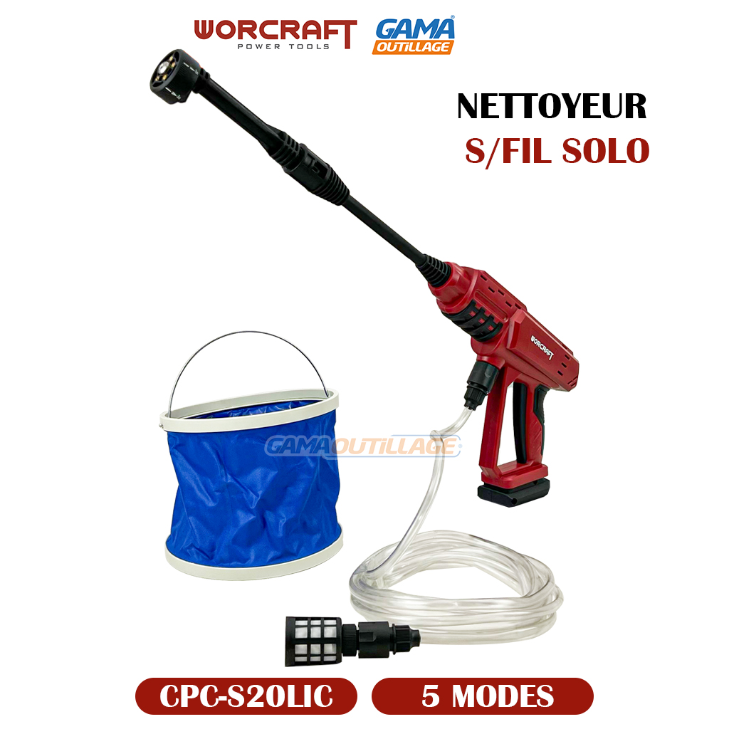 GAMAOUTILLAGE vous propose une NETTOYEUR S/FIL SOLO WORCRAFT, La mini-laveuse rechargeable WORCRAFT CPC-S20LiC est l’appareil le plus mobile pour nettoyer les surfaces des voitures, meubles de jardin, terrasses, façades et tout autre.