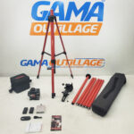 Livré avec un trépied réglable (57 – 126 cm) et des barres d’extension permettant une hauteur de travail jusqu’à 5 m, il s’adapte à tous les chantiers. Le coffret comprend également 2 batteries rechargeables, un chargeur USB-C, une télécommande et un support de fixation mural.