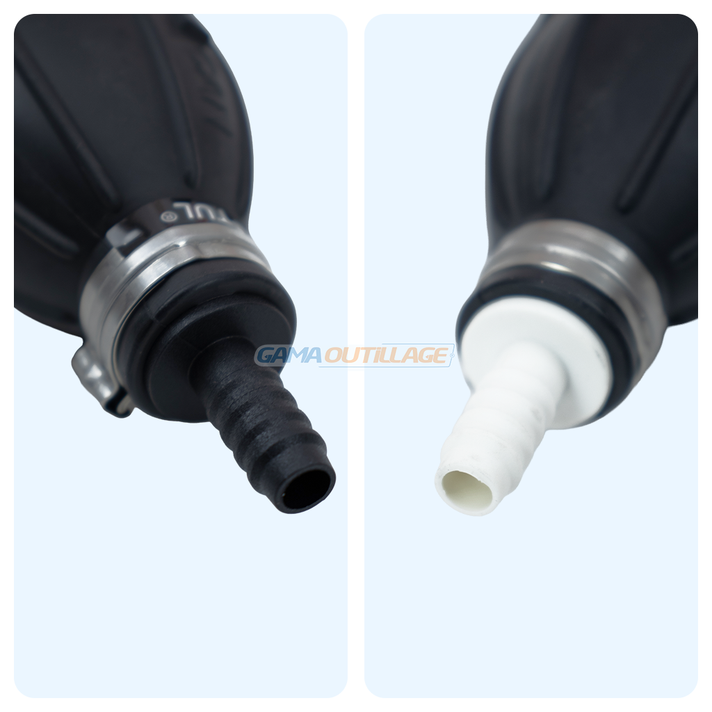 Compact et facile à manipuler, cet outil s’adapte aux durites grâce à ses embouts cannelés et se fixe solidement à l’aide des colliers fournis.