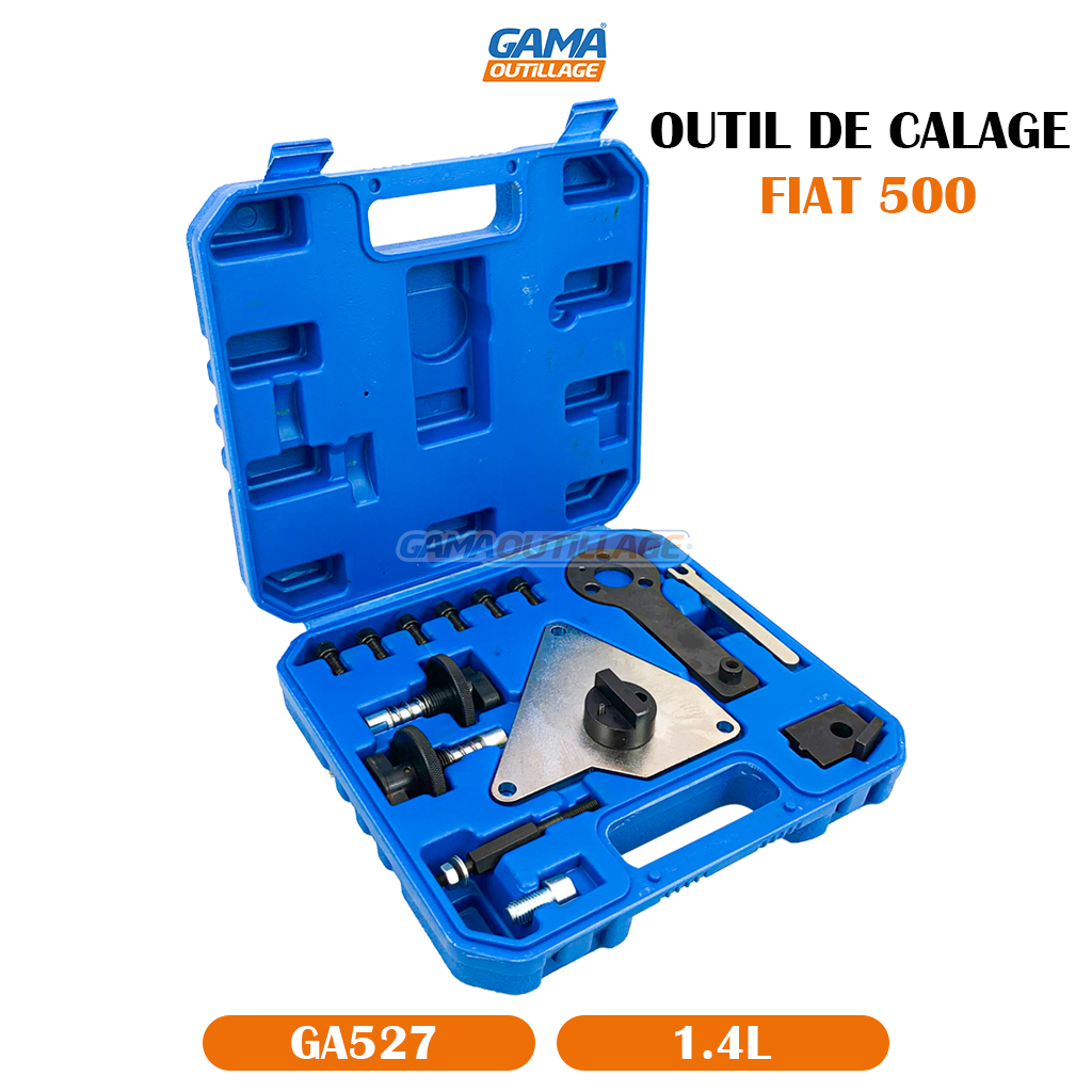 GAMAOUTILLAGE vous propose une OUTIL DE CALAGE FIAT 500 1.4L, Un outil de calage est un ensemble de pièces spécifiques conçues pour immobiliser les éléments d’un moteur (arbres à cames, vilebrequin) dans une position précise pendant les opérations d’entretien, notamment lors du remplacement de la courroie de distribution. Pour un moteur Fiat 500 1.4L, cet outillage est indispensable pour assurer un calage parfait et éviter d’endommager le moteur.