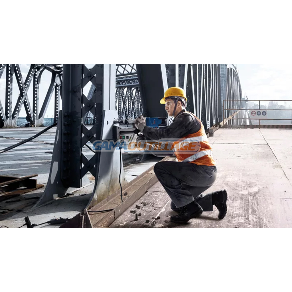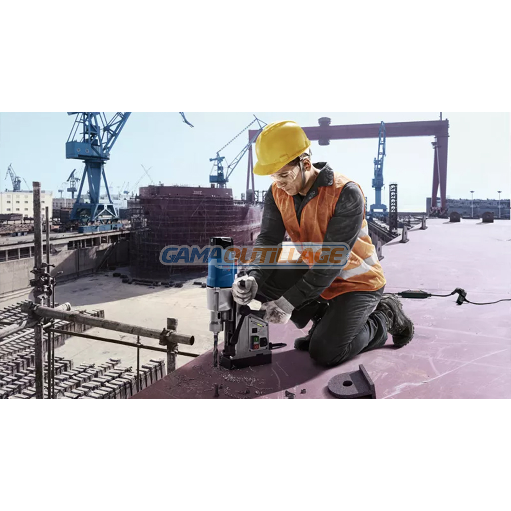 GAMAOUTILLAGE vous propose une PERCEUSE MAGNETIQUE 50MM 1200W BOSCH, également connue sous le nom de GBM 50-2, est un outil performant conçu pour les travaux de perçage précis et efficaces dans le métal. Son moteur puissant de 1200W lui permet de percer des trous jusqu’à 50mm de diamètre dans l’acier, et sa force magnétique de 14 000N assure une stabilité et une précision optimales.