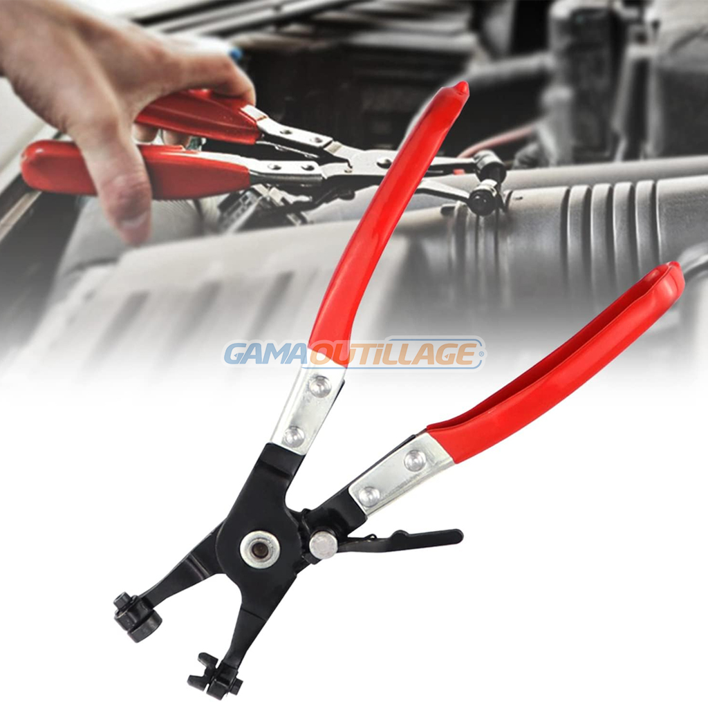 GAMAOUTILLAGE vous propose une PINCE COLLIER DROIT TA, est un outil manuel utilisé pour serrer et desserrer des colliers de serrage, notamment les colliers de serrage pour tuyaux. Elle est dotée d’un long bec fin et incurvé qui permet d’accéder facilement aux colliers situés dans des endroits difficiles d’accès. La mâchoire de la pince est crantée pour assurer une bonne prise sur le collier et le serrer fermement.