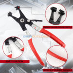 PINCE COLLIER DROIT TA, est un outil manuel utilisé pour serrer et desserrer des colliers de serrage, notamment les colliers de serrage pour tuyaux. Elle est dotée d’un long bec fin et incurvé qui permet d’accéder facilement aux colliers situés dans des endroits difficiles d’accès.