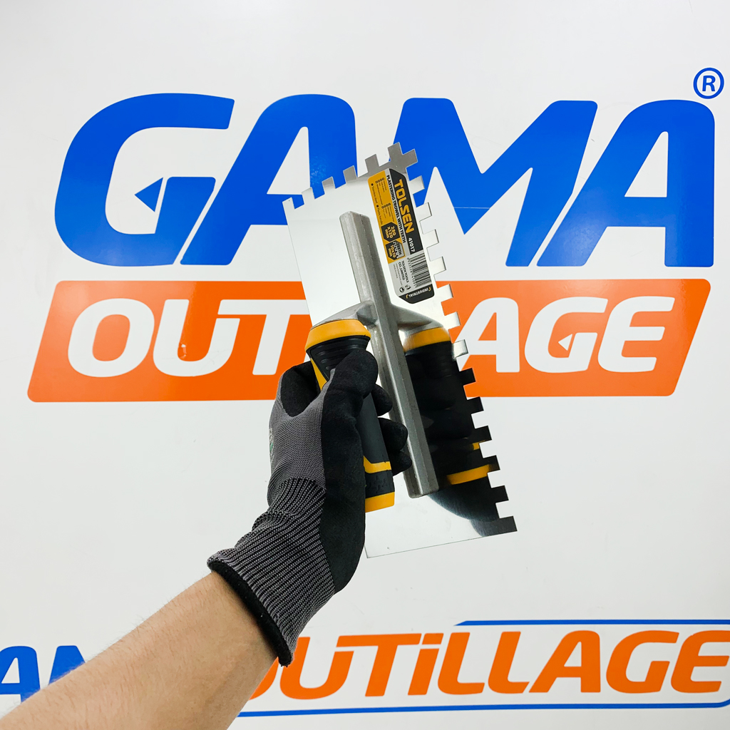 GAMAOUTILLAGE vous propose une est PLATOIR EN INOX DENTE 10*10 TOLSEN, un outil essentiel pour les travaux de plâtrage. Elle se distingue d’une truelle lisse par sa lame métallique munie de dents ou de crans, généralement en acier inoxydable.