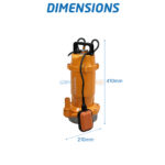Compacte et pratique, elle dispose d’un corps en aluminium résistant à la corrosion, d’une poignée ergonomique et d’un flotteur automatique qui protège la pompe contre la marche à sec. Ses dimensions de 410 × 210 mm permettent une installation simple et un transport facile.