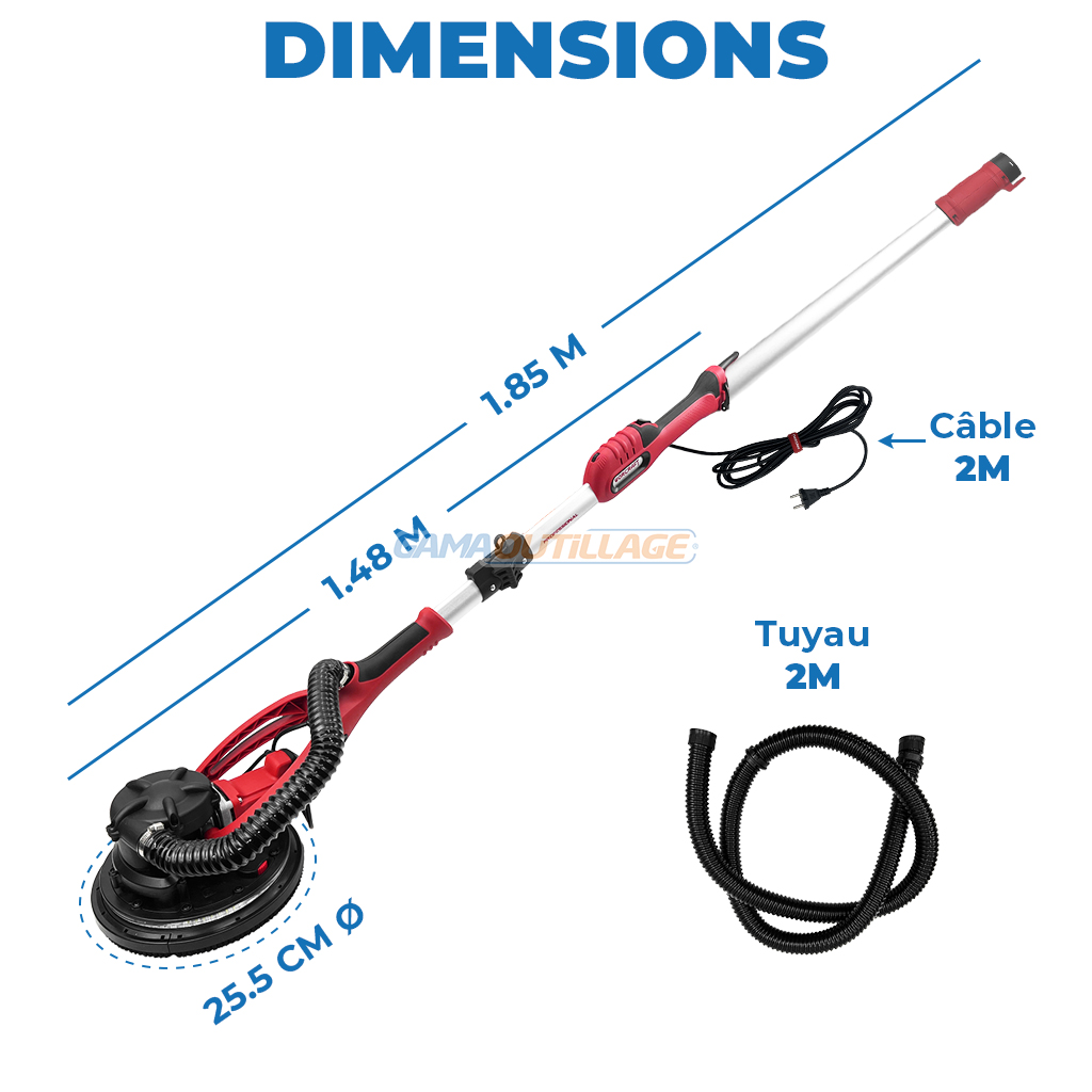 Découvrez les caractéristiques techniques approfondies de cette ponceuse à bras professionnelle :
