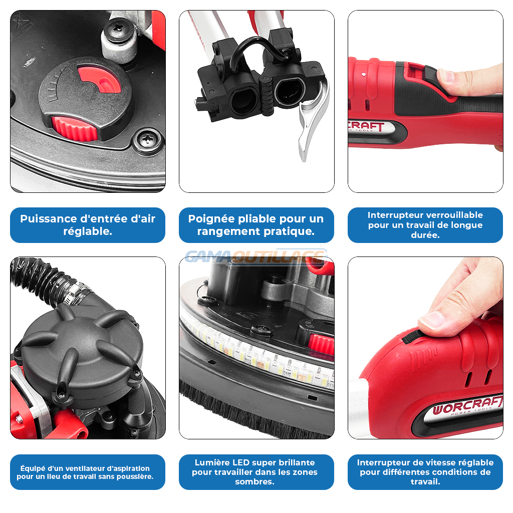 La ponceuse girafe WORCRAFT DS09-215 est un outil performant qui offre de multiples avantages :