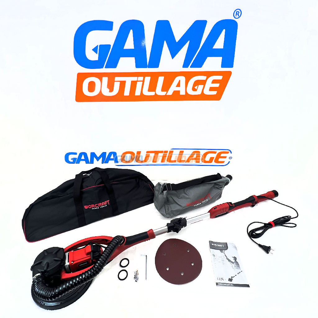 GAMAOUTILLAGE est fier de vous présenter la ponceuse murale girafe WORCRAFT DS09-215, un outil puissant et polyvalent conçu pour les professionnels et les bricoleurs exigeants. Avec son moteur de 900W et son plateau de ponçage de 215 mm, cette ponceuse télescopique permet de réaliser des travaux de ponçage de grandes surfaces (murs et plafonds) avec une efficacité et une rapidité remarquables.