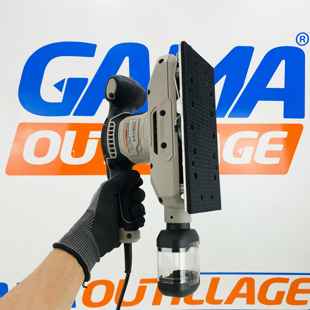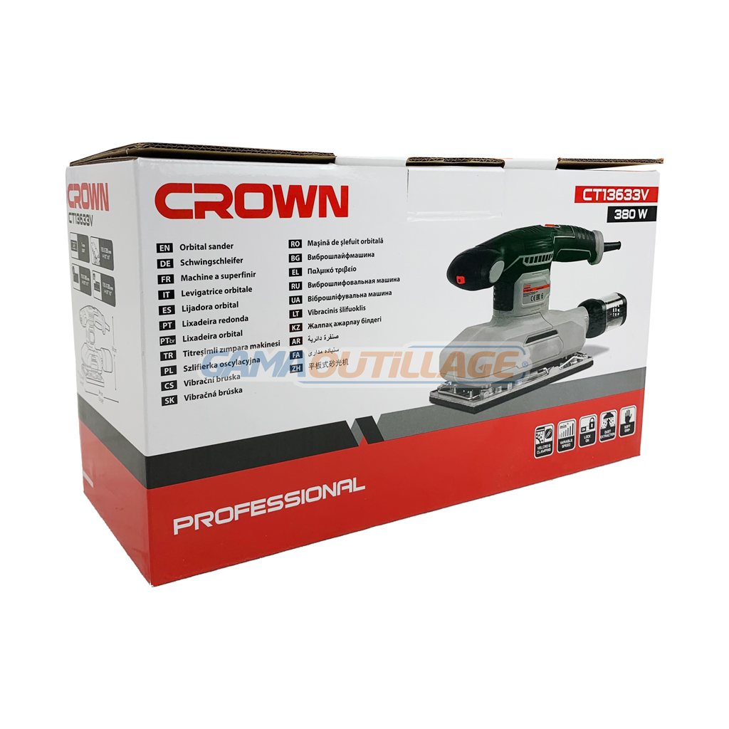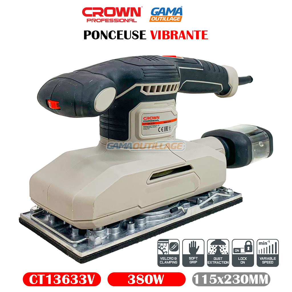 PONCEUSE VIBRANTE 380W CROWN, est un outil électrique polyvalent qui peut être utilisé pour poncer une variété de surfaces, y compris le bois, le métal, le plastique et la peinture.