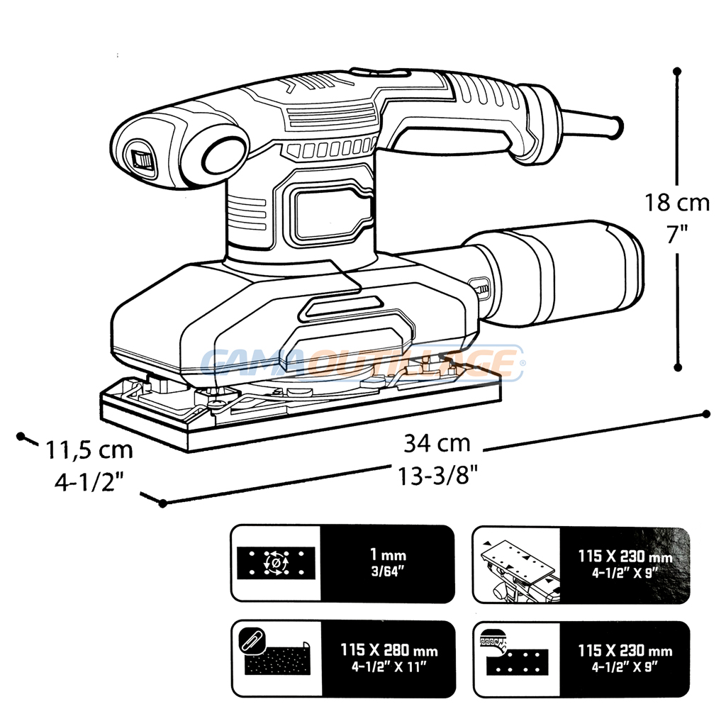 | Taille du papier abrasif (pince / Velcro) | 115 x 280 mm / 115 x 230 mm |