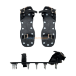 Chaque semelle est équipée de 13 pointes en acier époxy soigneusement vissées, assurant une excellente accroche sur les surfaces humides ou en cours de séchage. Leur base en plastique rigide répartit efficacement le poids et évite l’enfoncement, garantissant un rendu propre du sol.