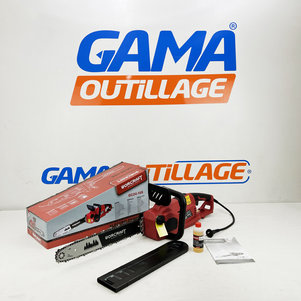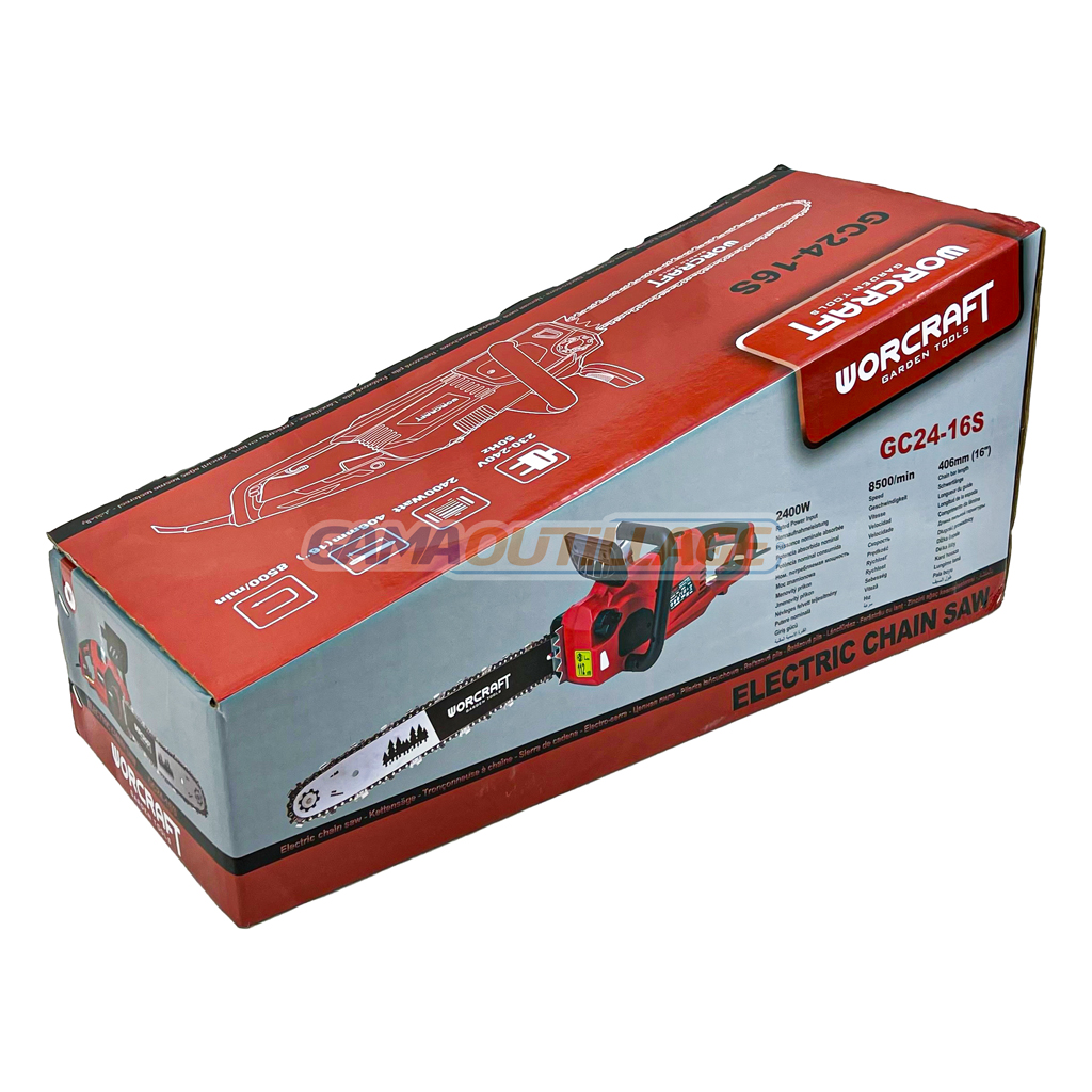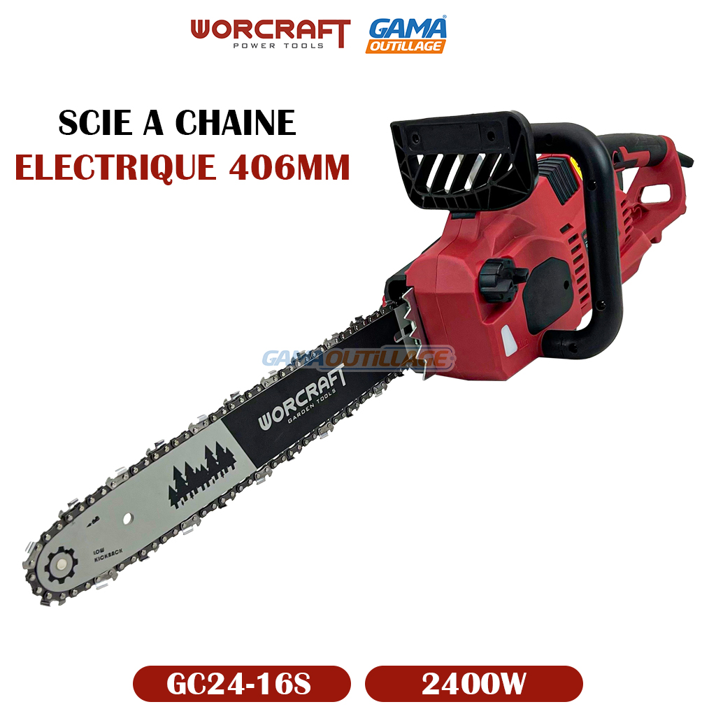 SCIE A CHAINE ELECTRIQUE 406MM 2400W WORCRAFT, La tronçonneuse à essence WORCRFT GC24-16S est parfaite pour couper sans effort dans le jardin ou dans une petite propriété. Idéal pour abattre des arbres de taille moyenne, préparer du bois de chauffage, élaguer et nettoyer les branches tombées.