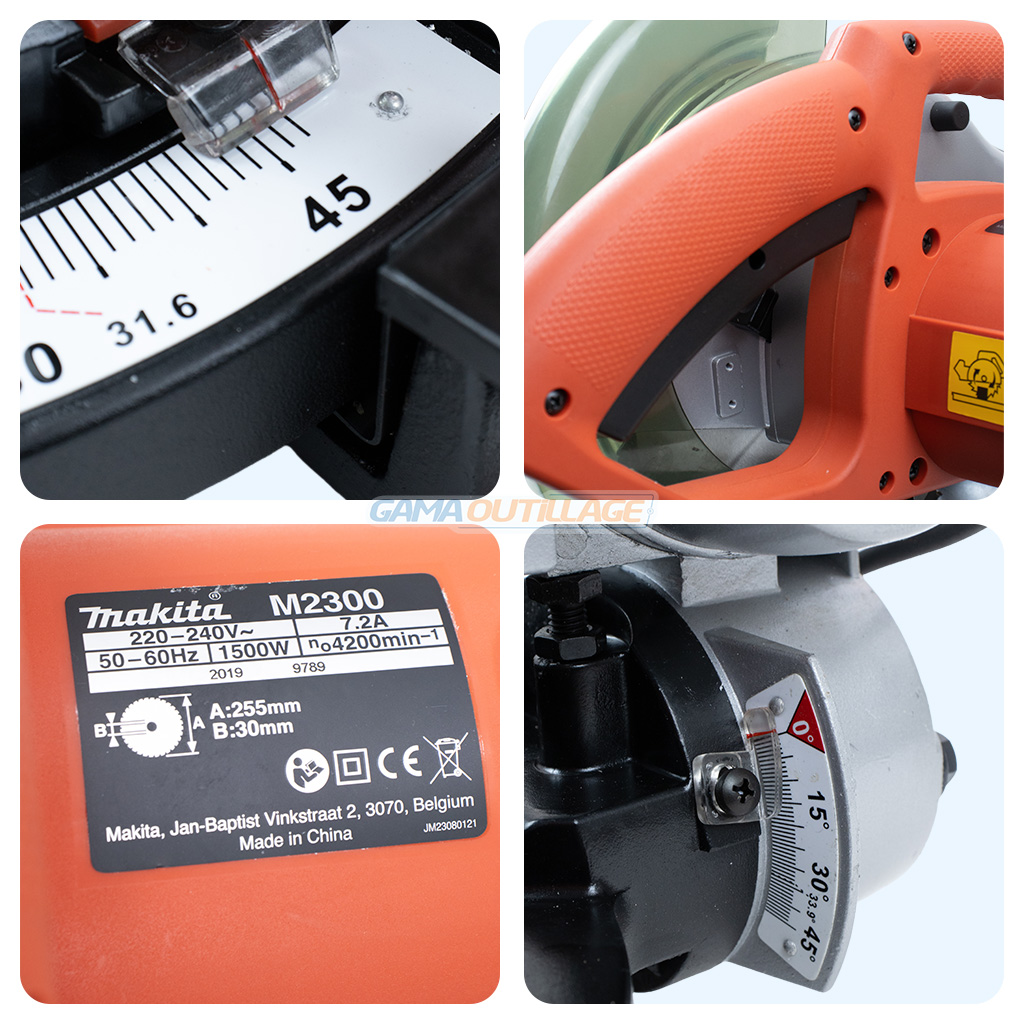 SCIE A ONGLET 255MM 1500W MAKITA, est une scie électrique portative conçue pour effectuer des coupes d’onglet et de biais précises dans une variété de matériaux, notamment le bois, aluminium.