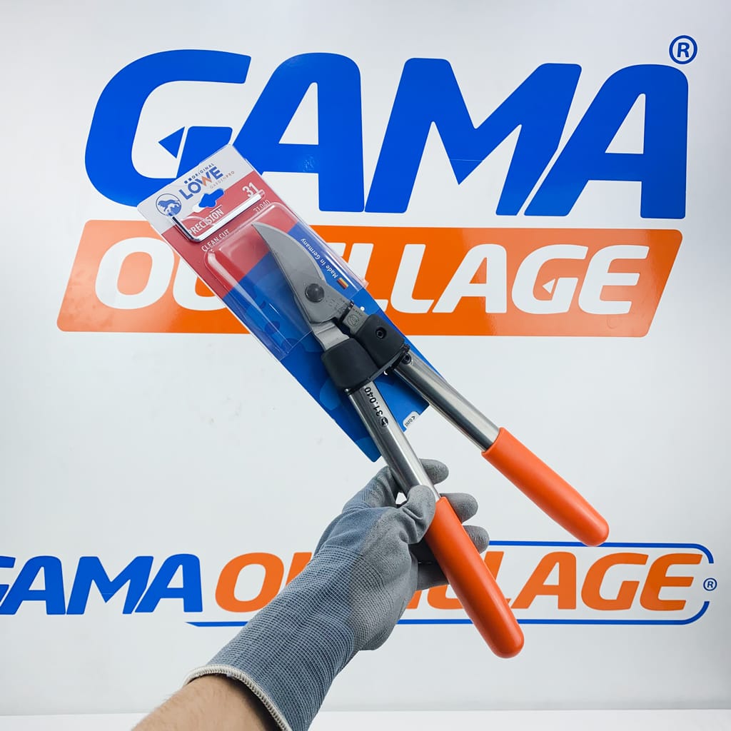 GAMAOUTILLAGE vous propose une SECATEUR JARDINIER 31.040 ORIGINAL LOWE, La tête de coupe fine et précise permet d’accéder facilement aux ramifications étroites et impressionne également par une coupe nette. Notre Original LÖWE 31 est utilisé lorsque l’effort requis avec un sécateur à une main devient trop important. Il est particulièrement adapté à la coupe du bois frais sur les vignes, les arbustes et les roses avec un diamètre de branche allant jusqu’à 30 mm et comble ainsi le fossé entre les sécateurs à une main et les grands sécateurs.