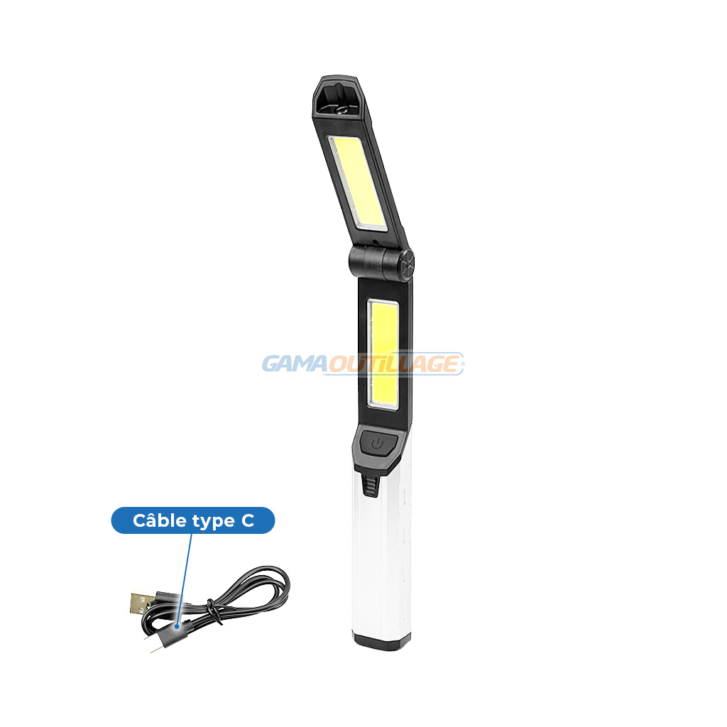 Torche à LED 2306 DNM compacte et orientable à 180°, rechargeable USB-C. Aimants, crochet rotatif et feu rouge. Ultra pratique.