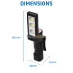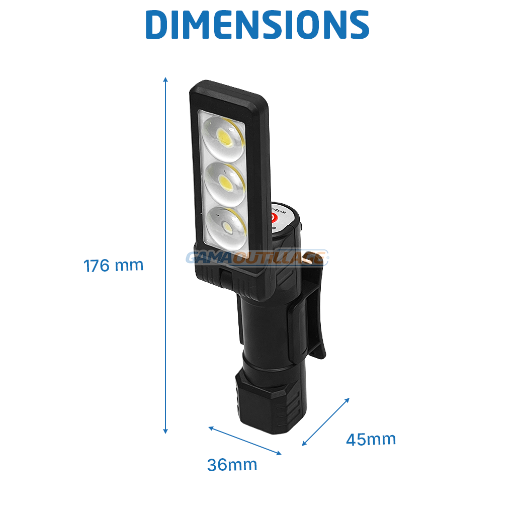 La torche LED DNM GA659 est une lampe compacte à LED triple, montée sur double axe de rotation à 180°, parfaite pour les zones de travail restreintes. Elle peut être utilisée en lampe de poche, ou montée sur une sangle pour servir de lampe frontale grâce au support inclus.