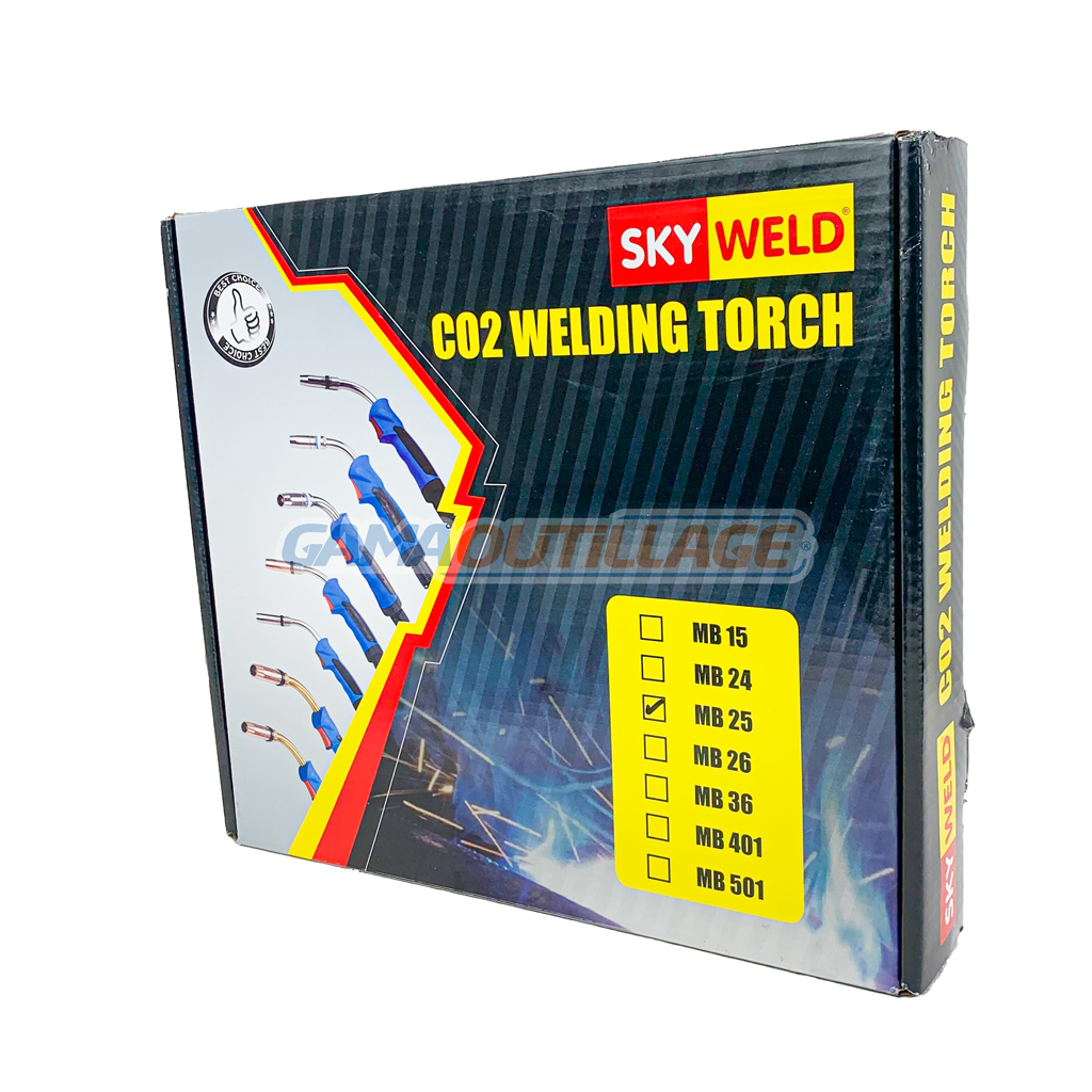 GAMAOUTILLAGE vous propose une TORCHE MIG MB25 250A 4M SKY WELD, cette torche est un outil couramment utilisé dans le soudage MIG (Metal Inert GasTorche MIG) ou MAG (Metal Active Gas). Elle sert à faire fondre un fil d’apport en le protégeant d’une atmosphère gazeuse, permettant ainsi de créer une soudure solide.