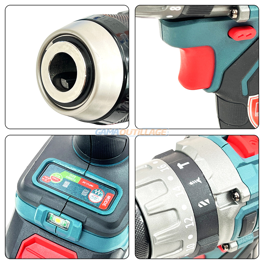 Applications : vissage, dévissage et perçage dans le bois, le métal et le plastique.